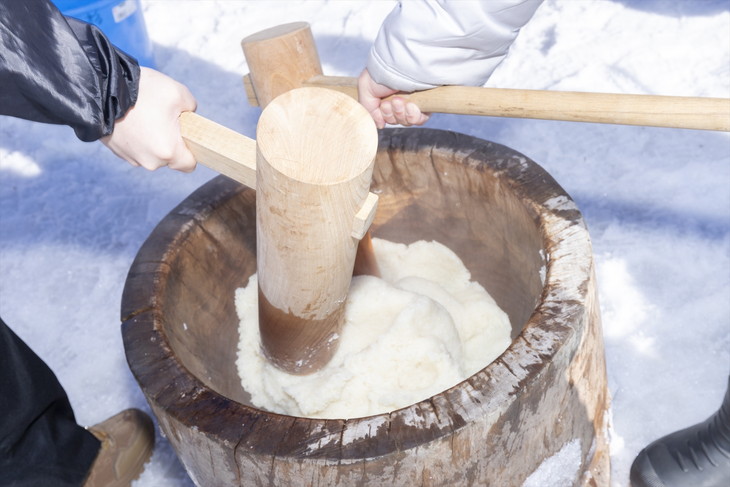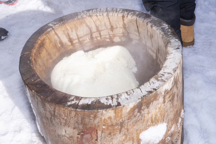 ぜひ、雪の上で食べる、極上のつきたてのお餅の味とその感動を味わってきてほしい。