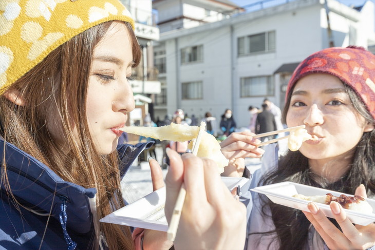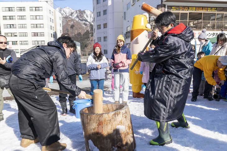 取材日には新潟県のゆるきゃら「レルヒさん」や越後湯沢温泉のミス駒子も来場しイベントを盛り上げてくれた。レルヒさんも、つきたてのお餅を食べたくて来たのだ、とのこと(笑)。