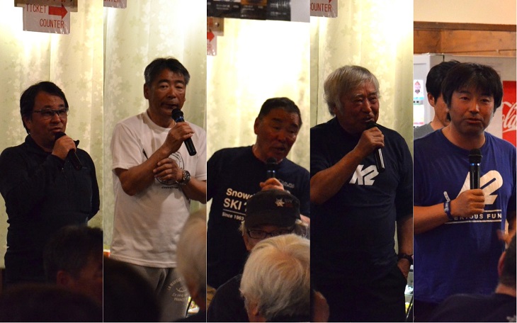 K2 JAPAN代表である田中さんのあいさつに始まり、かぐらスキー場の中澤さんからのお話や、ニセコからかけつけた、ニセコ雪崩調査所所長 新谷さんから、現在のスキー・スノーボードにおけるバックカントリーの危険性と楽しみ方などのお話があった。また、登山家で有名な三浦ファミリーも登壇し、三浦雄一郎さんは、日本スキー界の草分けである父:三浦敬三さんのエピソードや、かつて自身が雪山で遭遇した愉快&痛快な体験談を披露。三浦豪太さんは今季開催されたオリンピック解説の裏話で会場を笑わせてくれた。