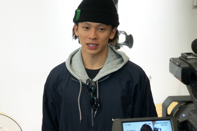 ひとつひとつ言葉を選んで、時には言葉を詰まらせながらも、丁寧に答える平野。誠実な人柄が垣間見えた。また、スノーボードに限らず、色んな人たちに夢や目標を持ってもらえれば、と何度も口にする。