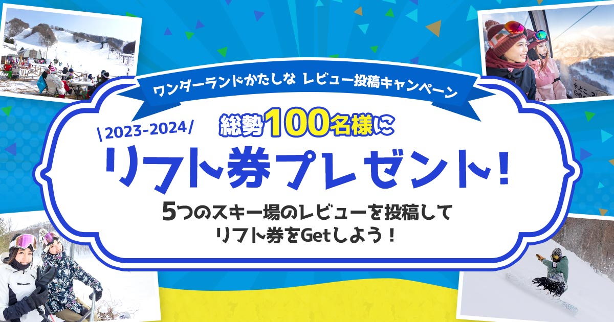 かたしなエリアにある5つのスキー場のレビュー投稿が対象。(ホワイトワールド尾瀬岩鞍・丸沼高原スキー場・かたしな高原スキー場・オグナほたかスキー場・スノーパーク尾瀬戸倉)