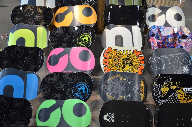 Separate Snowboards®「NICO(ニコ)」は、ブランド名そのままに2枚の板からなるスノーボード。『スキーとスノーボードの融合』、『フリーラインスケートのスノー版』と言われているが、そのスタイルは未知数・無限大だ。日本人ライダーによって滑走テストを行った、日本メーカー初となるセパレートタイプのスノーボード。ウエスト幅は日本人の体格を徹底的に配慮し設計を行っている。特長としては、「板が軽い」「両足が離れるので自由度が効く」「歩けるのでリフトがラク」など。リュックに納まるサイズなので、かなり手軽に楽しめる遊具だ。バリエーション豊かなグラフィックも魅力。