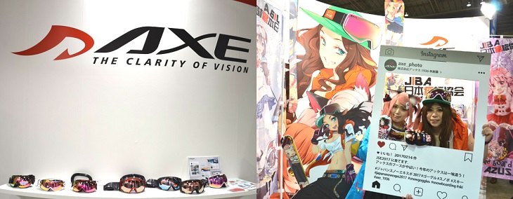 "ユーザー目線からのモノ作り”こそが、老舗ジャパンメーカーであるAXEの特徴であり、魅力である。注目はステルスF117(ナイトホーク)を彷彿とさせるフォルムとエッジが特徴の「AX770-WCM」やレディースモデルの「AX650-WCM」。どちらも広い視野が特徴のモデルだ。また、来季は漫画・アニメ・ゲームなどのキャラクターが描かれたギアで雪山を滑走する集団JIBA(日本板通協会)との奇跡のコラボが実現する。様々なコラボアイテムも乞うご期待。