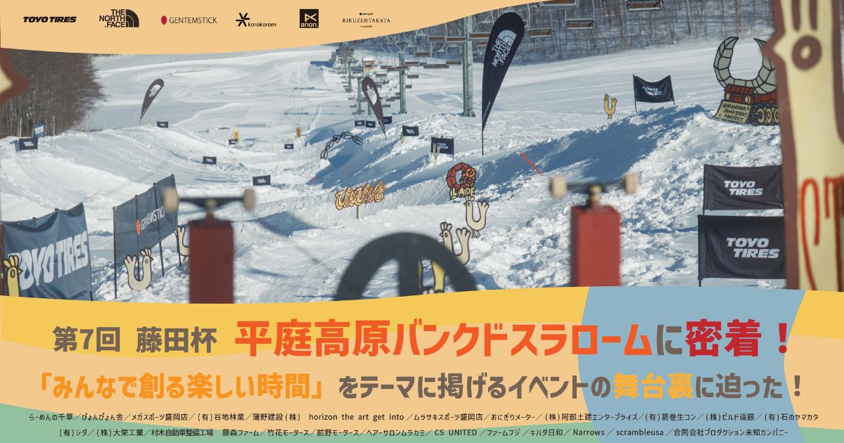藤田杯は、毎年2月の第2日曜日に開催されるスノーボードバンクドスラロームの大会である。参加者数は128名、リピート率は72%を誇り、参加者の90%が岩手県在住という地元に根付いたイベントとなっている。今回、プロスノーボーダー「藤田一茂」を中心として、この大会を盛り上げるため、イベント企画・コース造成など様々に裏側で動く男たちにクローズアップしたドキュメンタリー映像が公開。熱い想いを記事からも御覧ください。