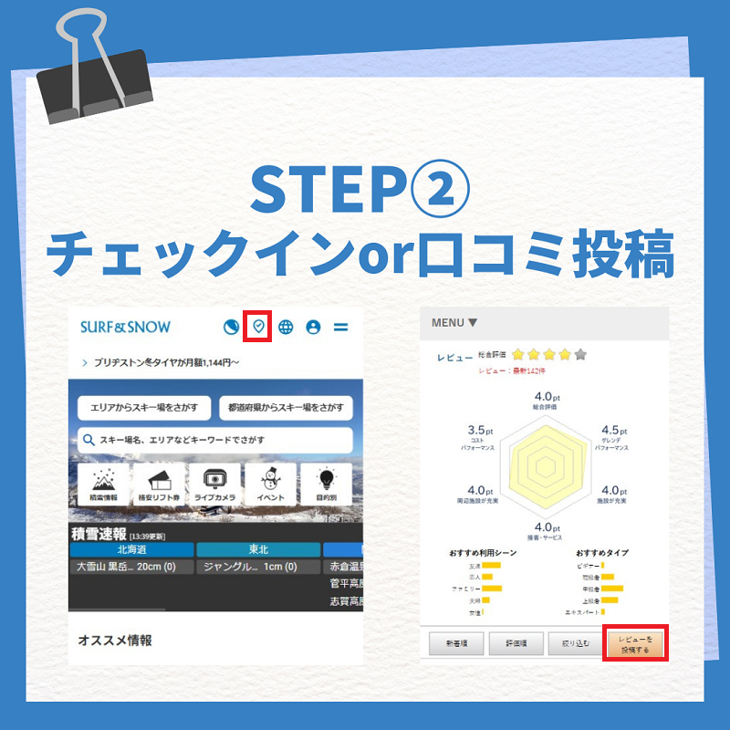 STEP②チェックインorレビュー投稿でコインをGET!