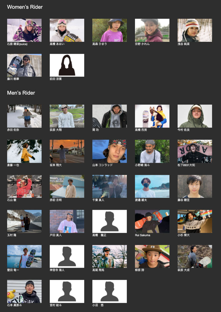 SNOWBOARD JIB CONTEST 出場選手一覧