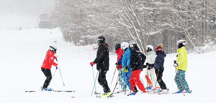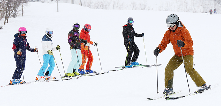 今回はレベル分けをしっかり行って2班に分けました。スキー操作の質や滑走スピードを着眼点にして分けましたので、実際の講習で「ついていけない」といったストレスを感じずに楽しんでもらえたと思います。