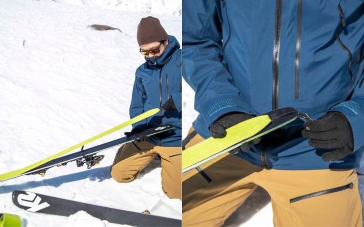 雪が降っているなら防水性の上着を着たまま、中間に着ているものを一枚脱ごう。それだけでハイクアップはずいぶん楽になる。同じように手袋も薄いものにして操作性を上げながら快適に。場合によってはビーニーも薄いものにするなど、全身薄着を心がけてハイクアップに備えよう。