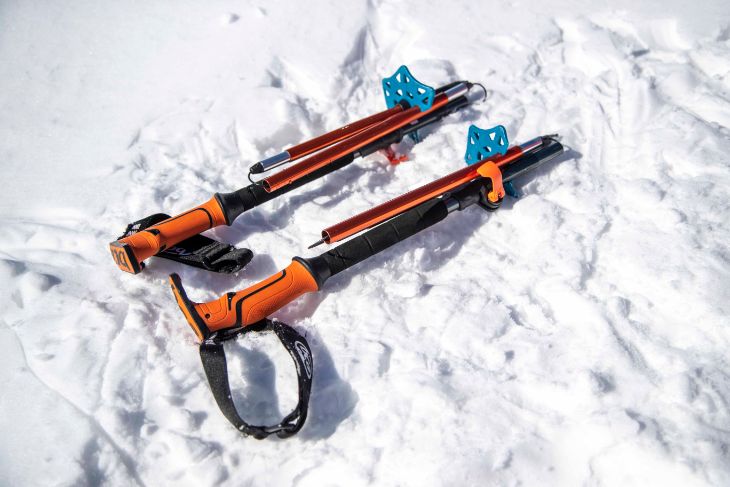 雪の上を歩くのは思っている以上にバランスが取りにくい。バランスを崩し滑落なんてことが起こらないよう、必ずポールは持っていこう。また、ポールは短く縮められるものを選びたい。