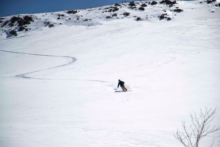 この意識はとても大切だ。ゲレンデのように整備されていないバックカントリーでは、常に危険を回避できる余力を残しておくことが必要になってくる。それはつまり、スピードを出しすぎないということ。スピードを出しすぎると危険回避ができなくなる他、ルートを間違ったり、小さなミスで転んでしまったり。こうして、小さなミスがあっという間に大きなケガに繋がってしまう。
