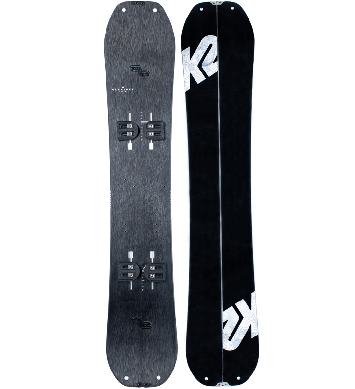 スプリッドボードは、スノーボード が真ん中から二つに分かれており、専用のビンディングと併せて使用することで、ハイクアップの際、スノーシューを使わずとも、スキーの様に滑走面にシールを貼りつけて登れるというアイテム。最大の利点はスノーシューよりも一歩一歩が大きい為比較的早く登れることと、バックパックに重い板を取りつけなくて良いという点。慣れが必要なため、まずはバックカントリーツアー等でレンタルしてみよう。