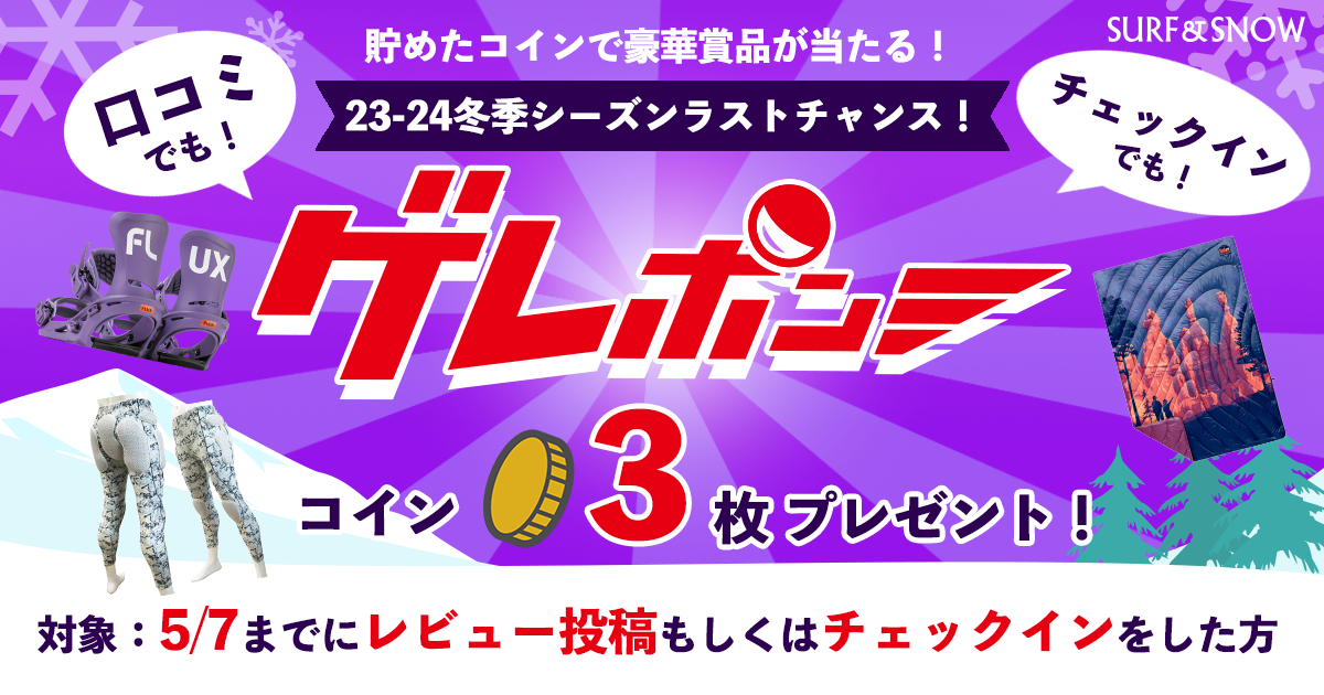 23-24冬季シーズンラストチャンス!~5/7までのレビュー投稿でゲレポンコイン3枚プレゼント!