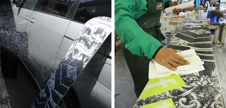 板を長期間保管するには汚れを落とすだけでなく、ワックスを塗っておくのがベスト。簡易用スプレーワックスや固形ワックスを直接塗るだけでソールの酸化を防ぐことができます。