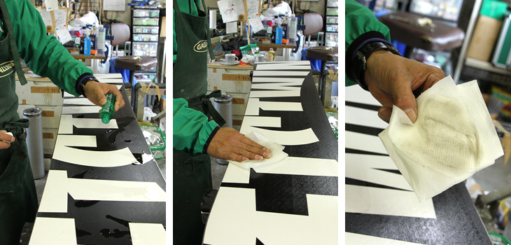 メンテナンス初級編では専用の道具などを使わずにできる、簡単なソール(滑走面)の汚れ落としの方法を紹介します。1シーズン使った後の板のソールは、雪上の花粉や黄砂、油などで汚れています。汚れ落としは板を保管するための最低限のメンテナンス! 簡単で手間の掛からない作業なので必ず実践しておきましょう。