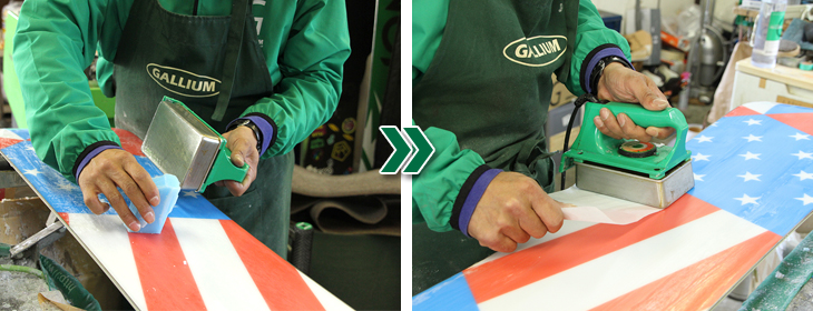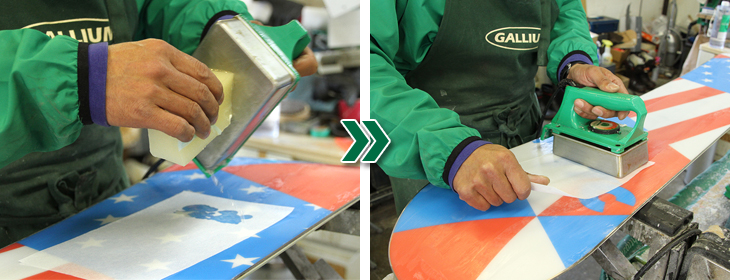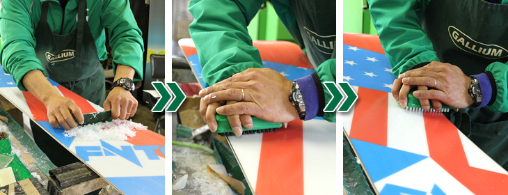 ①ホットワックス(クリーニング&ベースワックス)をかける