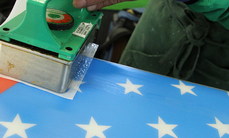 3.スクレイパー、ブラシを使ってワックスを馴染ませる