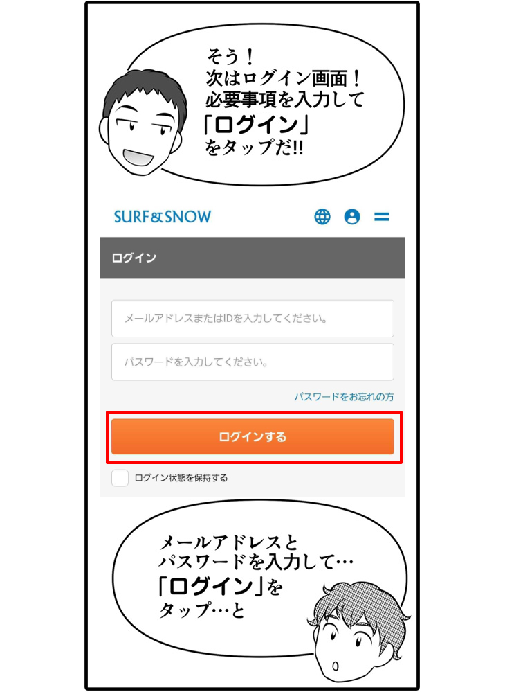 (ここで注意点!「surfsnow.jp」からのメールが受信できるように、受信許可設定をお願いします!)