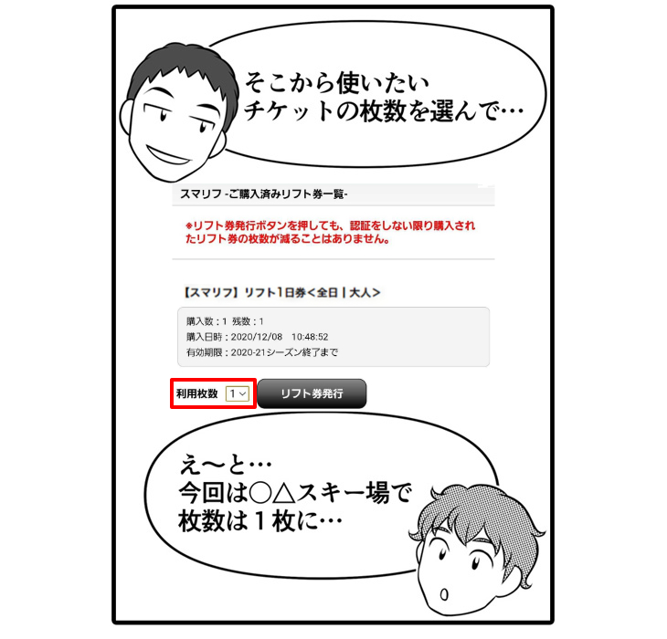 ③いよいよ当日リフト券の発行です!