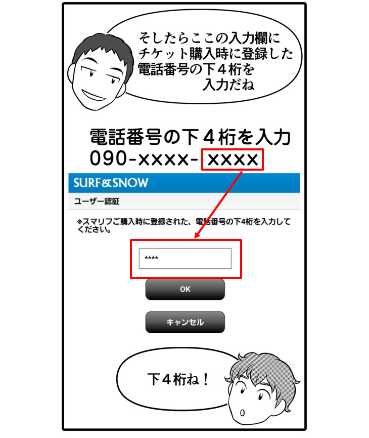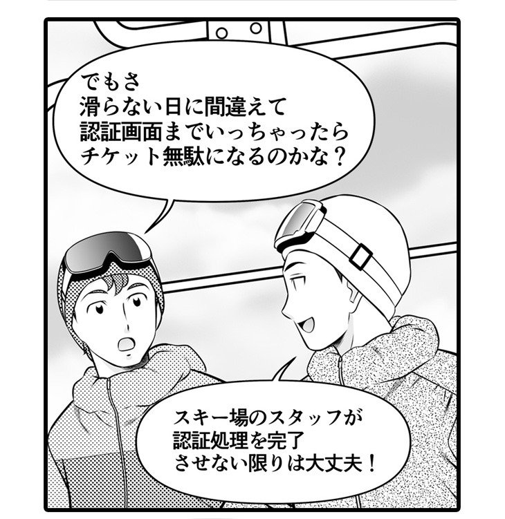 ④プリントアウトしたチケットではリフト券として使用できないので、しっかりスマホを持参してくださいね!