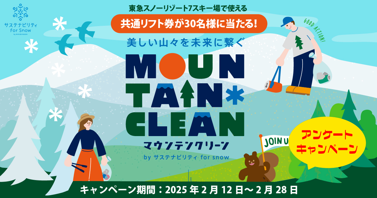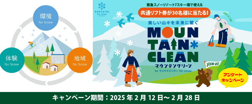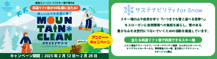 自分の遊ぶ場は自分で守り、将来につなぎ大好きなゲレンデが今後もきれいに利用できるように!マウンテンクリーンアンケートへのご協力をお願いします。