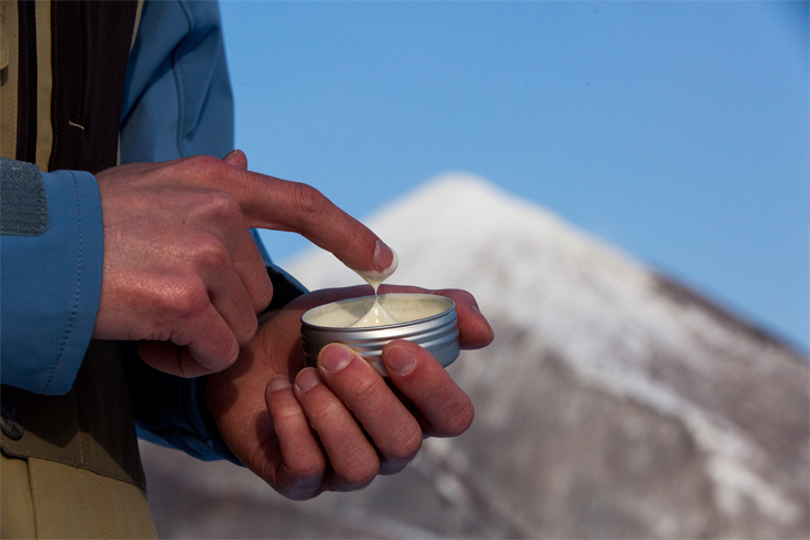 雪山では普段よりべたっとした、しっとりタイプのクリームなどを使うのがちょうど良いくらいです。