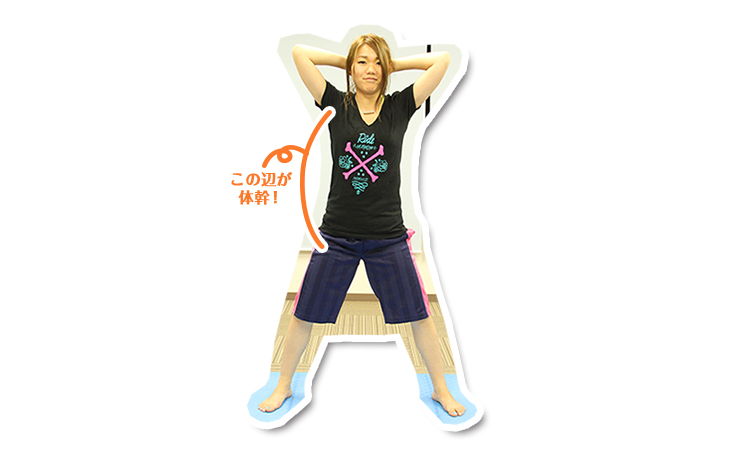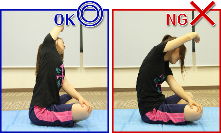 猫背だと脇腹がしっかり伸びないので背筋はまっすぐに。