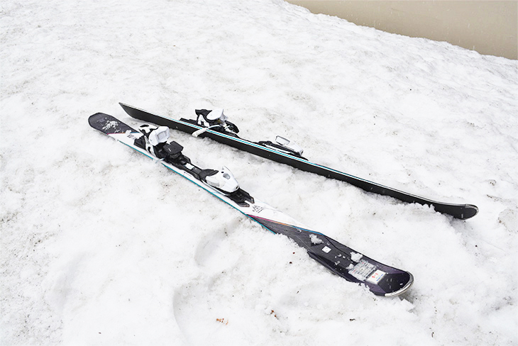 スキーやスノーボードを脱いだまま雪の上に放置することはやめましょう。すぐに戻ってくる場合でも、板置き場に立てたりじゃまにならない場所に置いておきます。