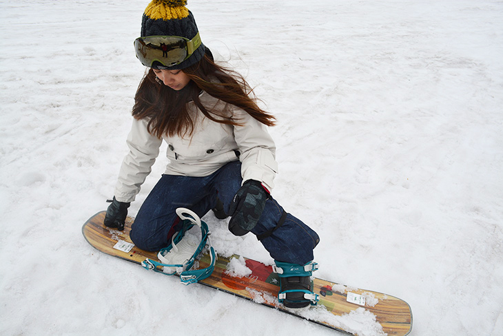 スノーボードの着脱時はおさえおく