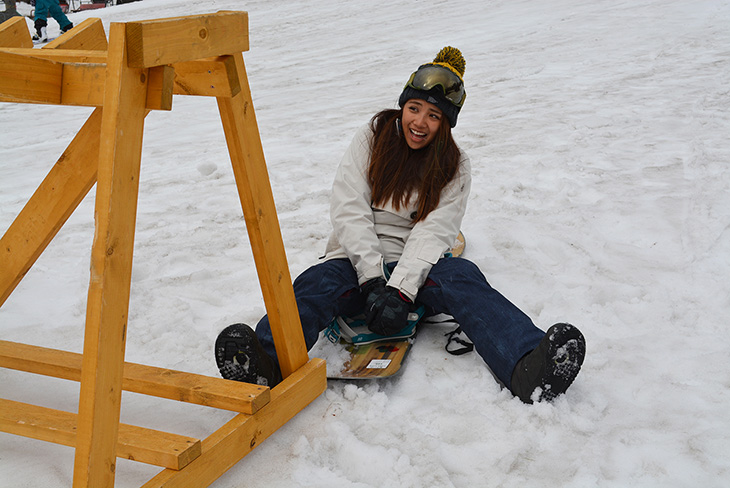 障害物にぶつって物を破損するだけでなく、自分もケガをする危険だってあります。ボードは滑走するために使用し、遊び道具にしてはいけません。それが安全にスノーボードを楽しむためのマナーです。