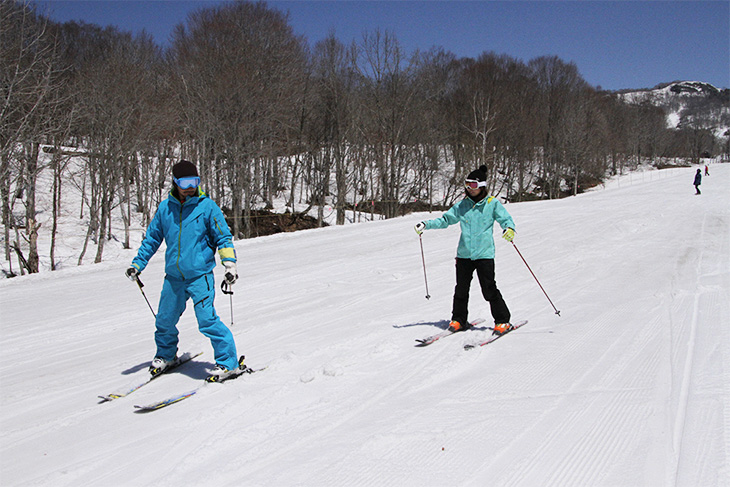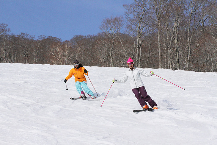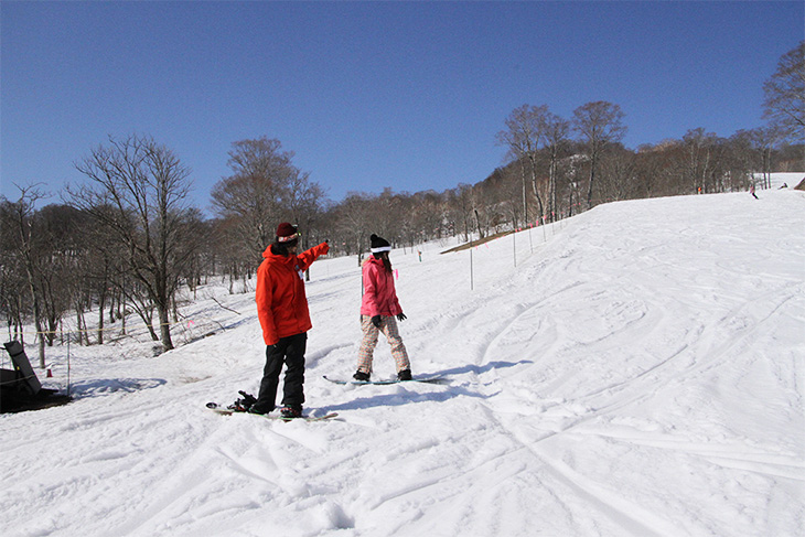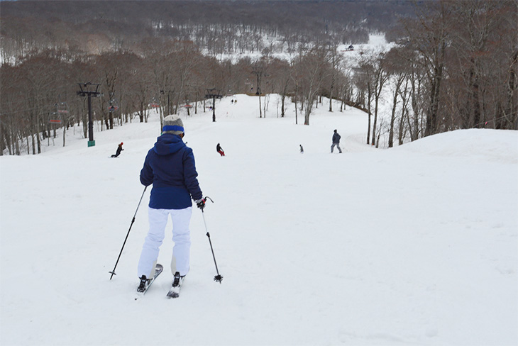 コースでは前を進む人が優先です。前を滑る人の動きを確認しながらコースをゆずり、追いつきそうであれば距離をとりましょう。