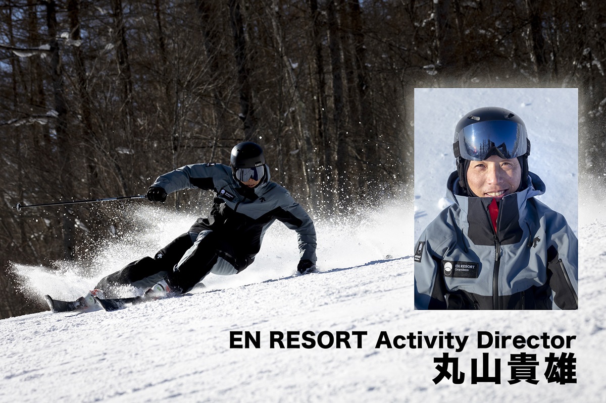 元ナショナル・デモンストレーターの丸山貴雄です。2023年で選手活動からは引退し、「ENリゾート」のアクティビティ・ディレクターに就任いたしました。そして今シーズンは福島県にある「グランデコスノーリゾート」(以後、グランデコ)を中心に、よりたくさんのお客様にリゾートホテルに滞在する楽しさ、スキー場で滑る楽しさ、自然の中で遊ぶ魅力を広げていく活動を行なっています。