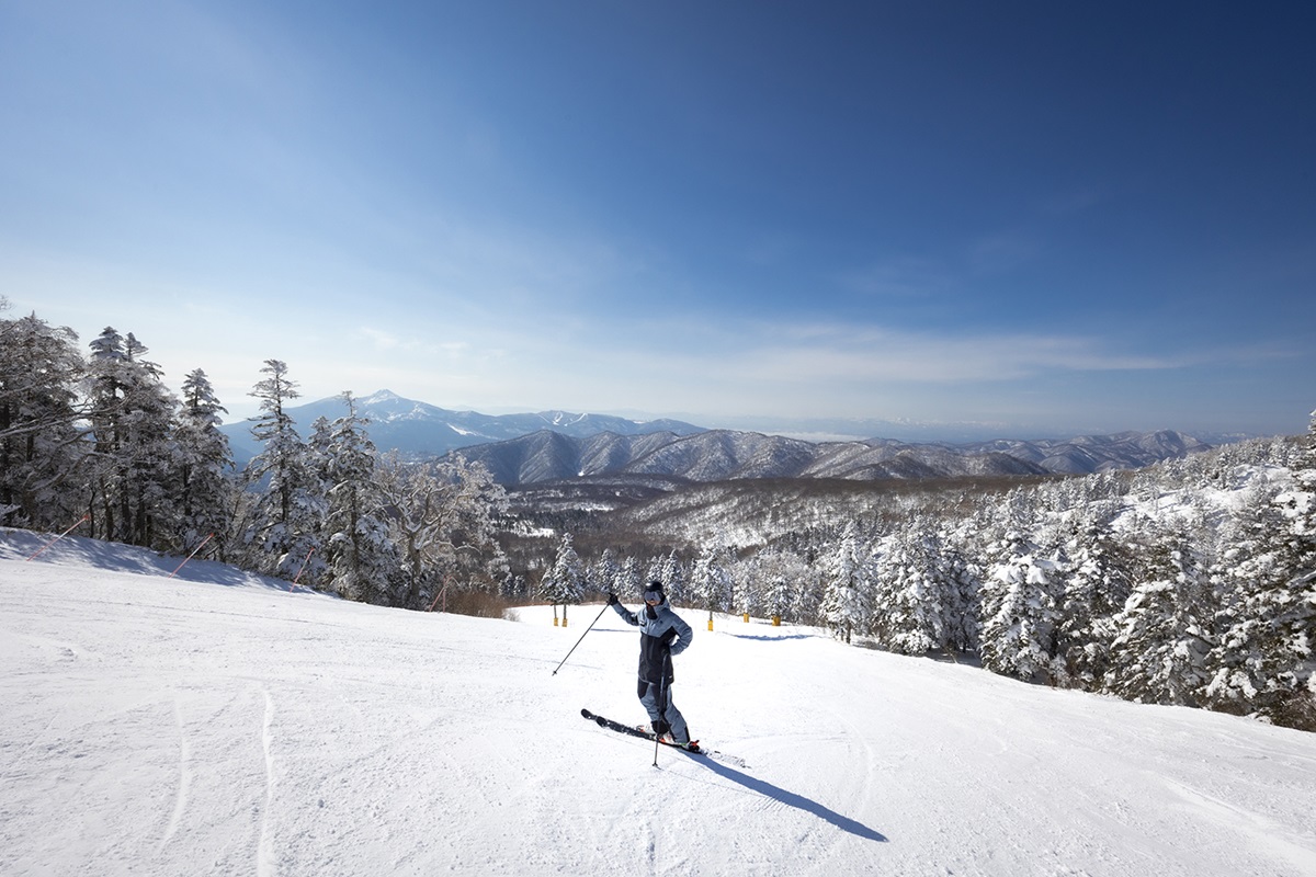 正面にそびえる磐梯山などの眺めを楽しみながら、ファミリーからさまざまなレベルの方に、思い思いに滑る楽しさを存分に味わってもらえるコースです。