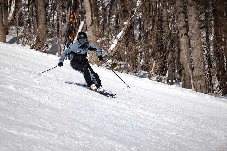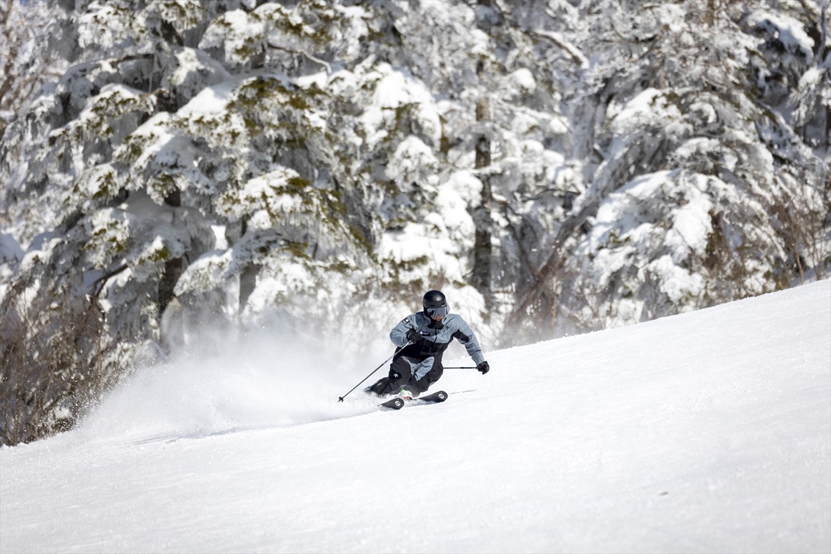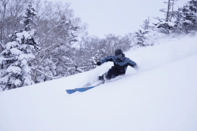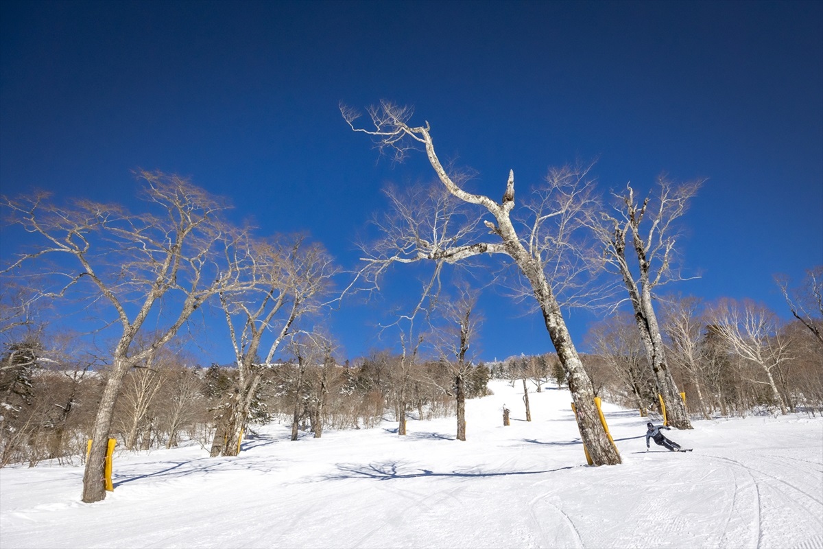 コースの幅がそれほど広くないのとブナの原生林もあるため、中回りから小回りで滑るのに向いていると思います。斜面変化も豊富なので、特に前後のバランスを崩さないように注意して滑ってみましょう。