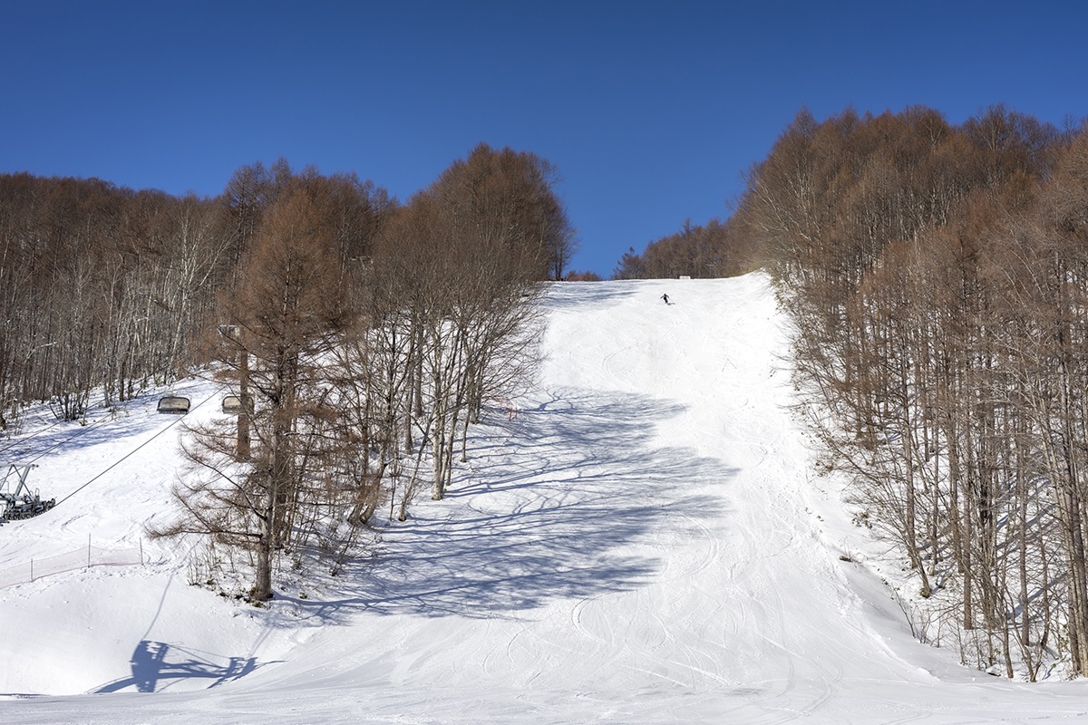 雪質がいいので初・中級者にもおすすめですが、コースは地形の変化に富んでいるので、そこがひとつのハードルかもしれません。コース前半は斜面が右側に下る片斜面になっているので、やや難しさを感じるかもしれませんが、中腹以降はストレートな中斜面~緩斜面が続くので、安心して滑りきることができると思います。