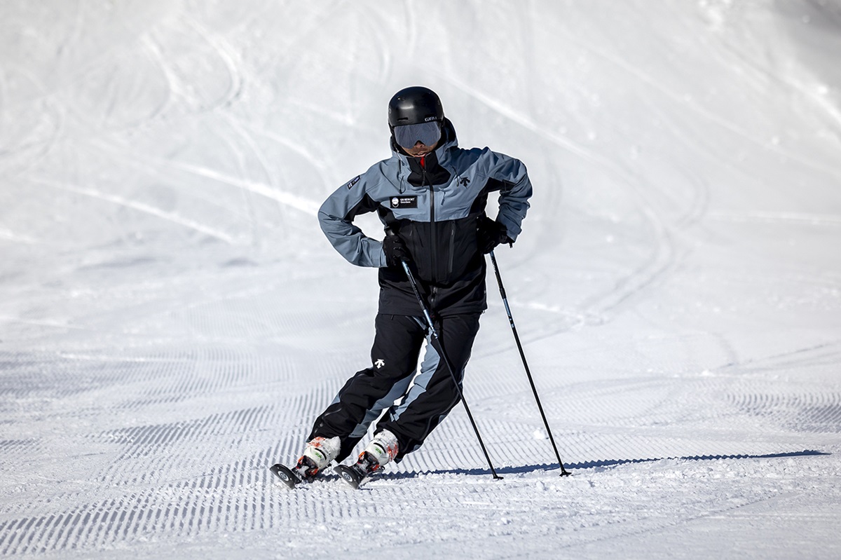 上級者はスキーをあまり振り過ぎることなく、正確なターンポジションでエッジングを行ない、スピードをコントロールしていきましょう。雪質が変化したり、コースが多少荒れてきたりしても楽しみながら挑戦してほしいです。
