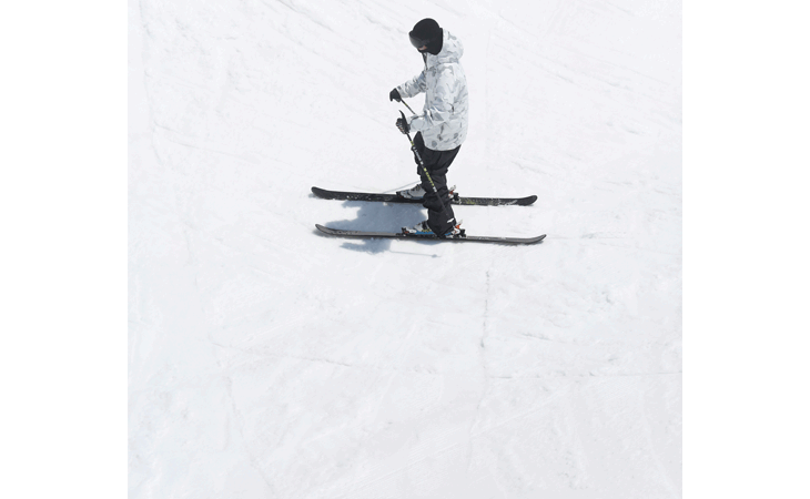 低速で構いませんので、足は浅めの八の字気味でも大丈夫です。ターンの弧とハーフパイプでの位置(高さ)がリンクしているのを感じると思います。慣れてきたら、頂点で少し真上に伸び上がって抜重してください。ブランコの要領で段々スピードが上がっていくのを楽しんでください。