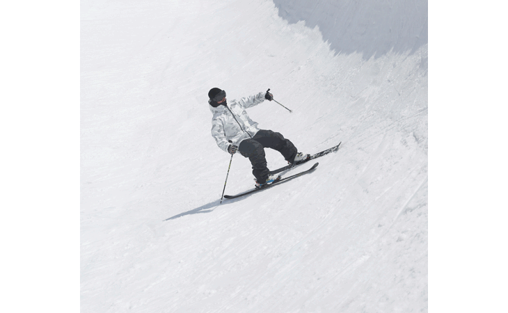 斜面に対して垂直だった身体を急に水平状態に持っていくので、最初は真っ逆さまに落ちていくように感じると思いますが、重要なテクニックなので何度も練習してください。