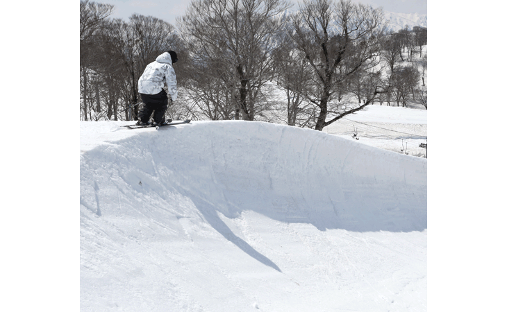 ハーフパイプはスノーパークのジャンプ台と比べても、技をするまでのハードルが高いアイテムです。選手クラスになると技も必要ですが、一般的にはジャンプの高さで評価が決まると思って構いません。無理に技をすることを目指すのではなく、しっかりとハーフパイプで遊べるようになることをまずは目指してください。