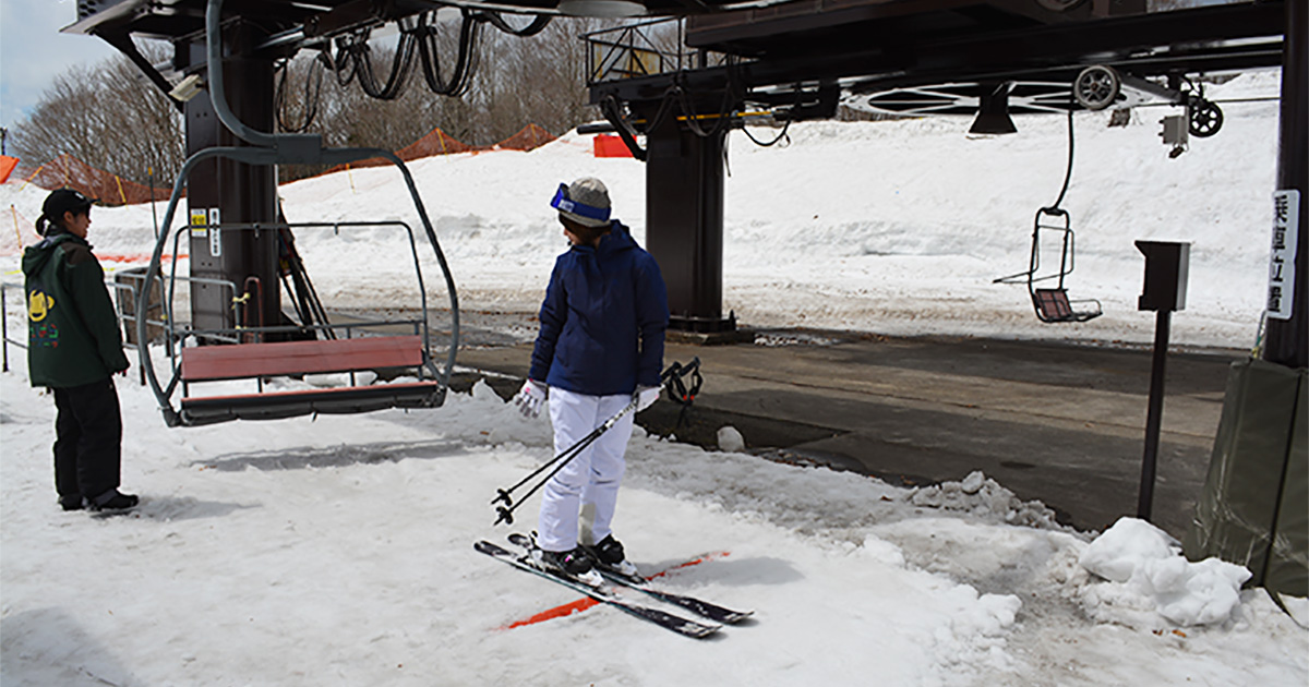 片足スキーで滑る感覚に慣れたら、いよいよ両足にスキーを装着します。まずは平地を歩いたり、方向転換したりしてスキーの長さに慣れていきます。そのコツを紹介していきましょう。