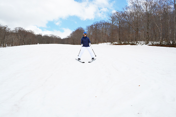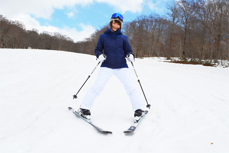 スキーのトップが開いてしまうとエッジが立てられず、スピード調節できません。スキーは常にきれいなV字をキープしましょう。