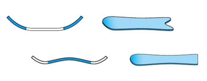 ボードがキャンバーと逆方向に反っている形状のこと。踏み込むとノーズとテールが浮いてキャンバーボードよりもソールの接地面が少なくなる。