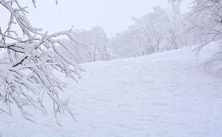 曇りの日や雪の降りが激しいときは森の中は視界が悪いので、コースを見失わないようゆっくり滑っていきましょう。