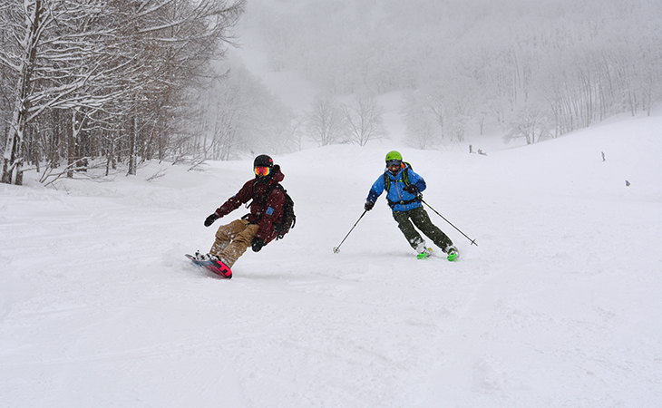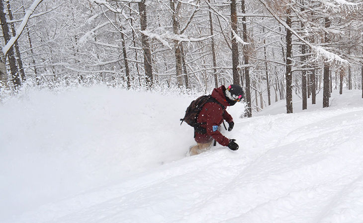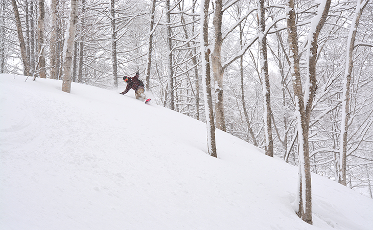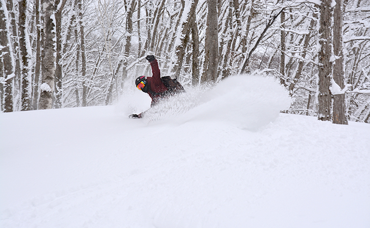 ショートターンで木立を通り抜け、ワイドバーンを狙って大きなロングターンを決めたら、地形でパウダーのスプレーを上げるなど、自分の滑りを思い切り出しきって自然と一体となった体験ができます。どう滑るかという決まりはなく、自然の中で自分の遊び方を見つけて楽しみましょう。