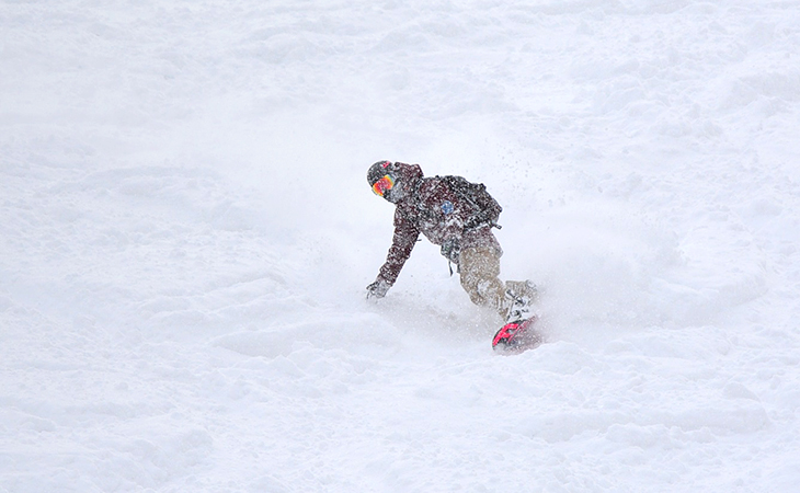 非圧雪やナチュラルバーンは深い雪に足を取られて、なかなか上手に滑れません。深い雪をスムーズに滑っていくには、ちょっとしたコツがあります。ポイントは積極的にボードのトップを浮かすこと。
