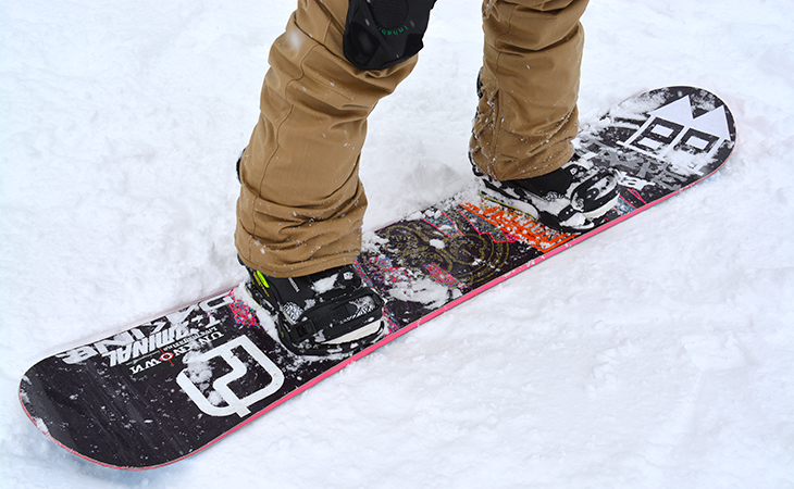 ビンディングの位置を後ろに付け替える「セットバック」するのもおすすめ。自然に後ろ重心になるセッティングです。
