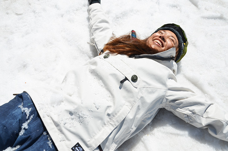 ウエアの素材は水滴が染み込まないほど防水性が優れています。生地外側からの水はブロックし、衣類内の蒸れは解消するなど、雪上でアクティブに過ごすことを考慮したさまざまな機能を搭載しています。