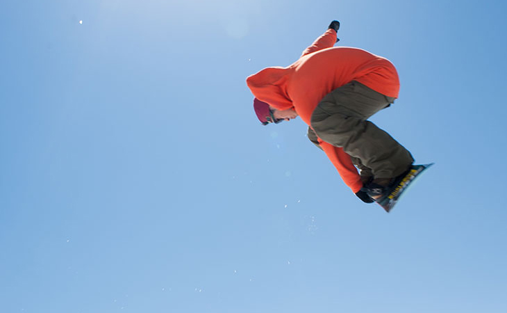 空中でスノーボードを身体に引き寄せられるようになる頃には、ジャンプそのものがまったく怖くなくなっているはずだ。こうなるとしめたもの。次のステップ、グラブに進もう。グラブは空中でスノーボードをつかむこと。こうすることで体勢がよりコンパクトになり、姿勢が安定するようになる。