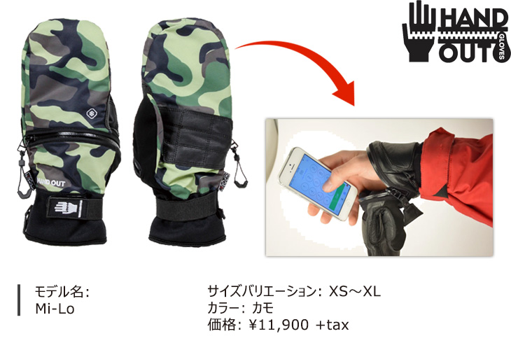 耐水性、耐湿性、通気性といった機能性を最高レベルで組合せつつ、手の甲部分に配置されたウォータープルーフ・ジッパーから、容易にグローブから手を出し入れ可能にし、あらゆるシーンで、実際に手を使う作業を行うことを実現。19-20シーズンに新たに登場するMi-Loモデルは、短いカフが特徴。