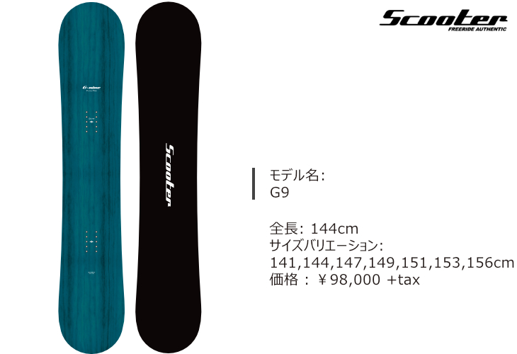 軽く柔らかめのフレックスによって、とにかく動きやすく、自在のコントロール性を誇るディレクショナルツインがG9。長年のテスト経験から生み出されるフレックスは軽量で柔らかいながらもカービングの安定感を生み出し、初心者からトリック、ジャンプ、きもちの良いターンまで、パワー要らずでゲレンデ全体を軽快にこなすオールラウンドモデル。