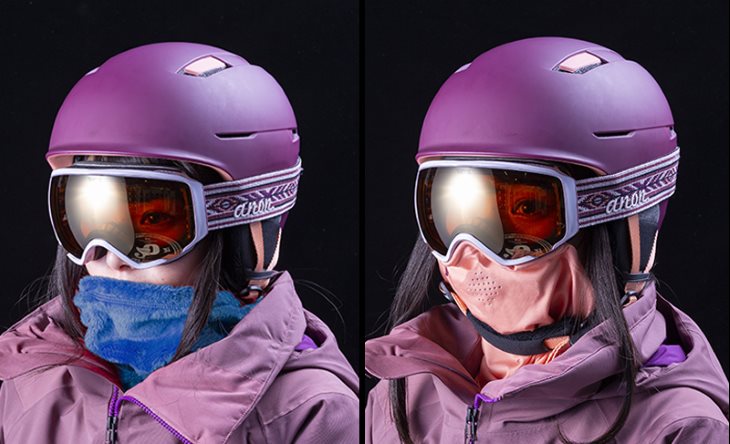 現在のAnonの魅力で、その進化を説明するのに外せないのが「マグネット」の採用だ。レンズ交換をワンアクションで容易にしているのが重要なポイントではあるが、このマグネットを利用して、シームレスで連結する「MFIフェイスマスク」も登場。特に女性ライダーには雪上で気になる「日焼け」や「寒さ」といった対策に、MFIフェイスマスクの注目度が高まっている。女性だけとは限らないが、雪上では強くなる紫外線だけでなく乾燥した冷たい空気から、どうやって肌や目を守るか、対策を少なからずとも考える必要がある。